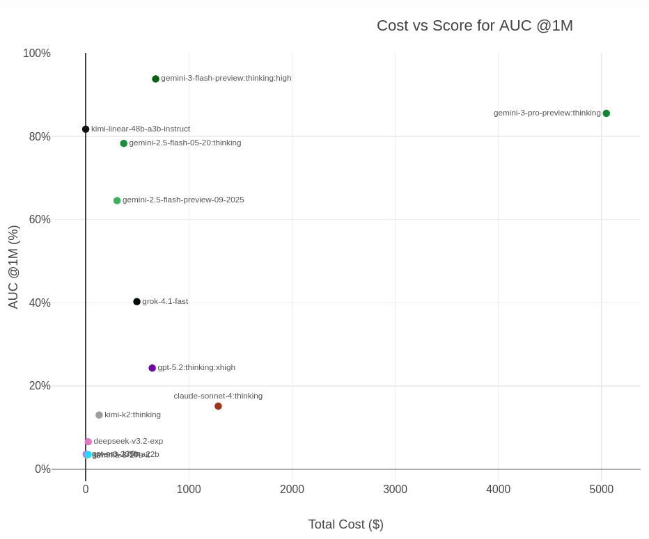 The exception to this is Kimi linear, the chinese lab who is experimenting with linear attention. But the problem is that they found their linear attention to be notoriously bad at knowledge tasks, which Gemini 3 flash is super good at. Gemini 3 pro and flash perform spectacularly on benchmarks and are insanely cheap compared to the competition. For context, Gemini 3 flash’s biggest competitor is likely opus 4.5, which is literally 10 times more expensive.2