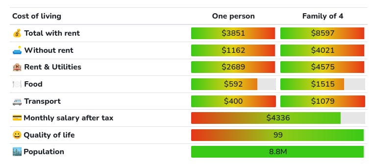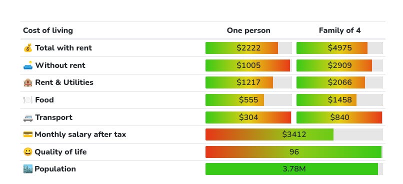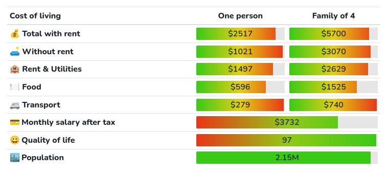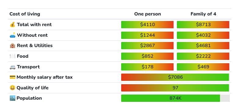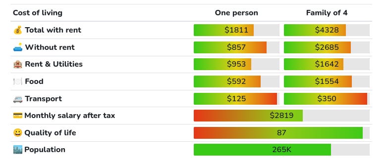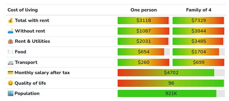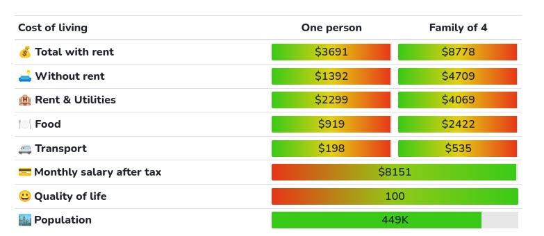 For cost of living I will use this site. I am literally just trusting them that it’s accurate, sometimes the results don’t align well with my intuition, so if you find a better estimate, let me know.