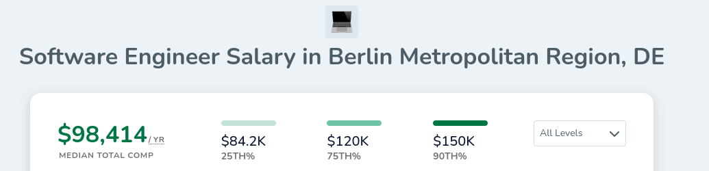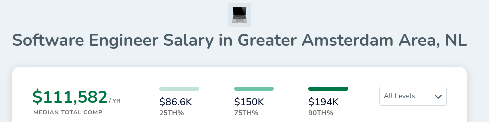 Stats are extra deceptive here, Amsterdam is also known for a very strong finance hub. If you want to go work for a quant, wages will probably be quite a bit higher, keep that in mind. No quant has the title “software engineer”. But I’ll stick to the formula for consistency now.