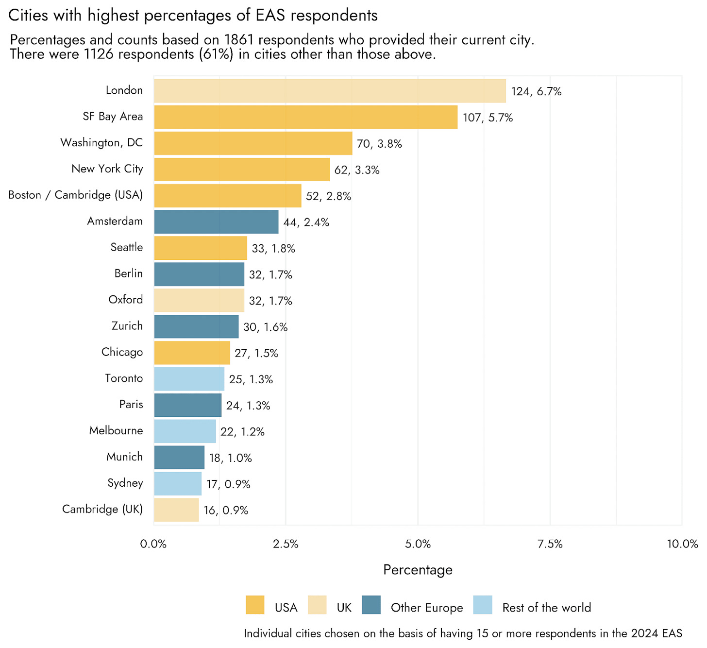 I’m only gonna say this once, but know that every other city loses dramatically on this front, by virtue of not being SF. So when I later call Zurich “OK!” for EA community, know that it’s with this caveat.